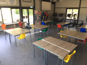 Atletiekvereniging De Liemers heeft met markeringen op velden en bij de accommodatie in beeld gebracht hoe de 1,5 meter afstand uitpakt. Jacqueline: “De conclusie is dat buitensporten op een veilige manier is te doen, maar er kunnen minder mensen tegelijk terecht. Vooral het gebruik van de voorzieningen, zoals kantine, toiletten en kleedkamers vraagt om flinke aanpassingen. Voor teamsporten ligt het weer anders. Het klassieke potje voetbal kun je wel even vergeten, je kunt met maximaal zes spelers op het veld. Natuurlijk kun je ook daar met alternatieven aan de slag. Je zou exercise posters kunnen gebruiken om bootcampachtige oefeningen af te beelden. Zo kunnen de andere spelers naast het veld werken aan hun conditie.”