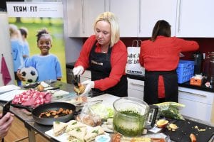 Als onderdeel van het themajaar Sport & Voeding van de provincie Gelderland organiseerde de Gelderse Sport Federatie (GSF), in samenwerking met de provincie, Team:Fit, Sligro en Papendal, de challenge ‘Koken met Van Gelder’. Scholen, sportverenigingen en bedrijven werden uitgedaagd een gezonde kantinehap in te sturen. Uit de inzendingen werden drie gerechten geselecteerd voor een heuse kookfinale. Voordat het koken van start ging werden de deelnemers eerst aan een korte quiz onderworpen door juryleden Désirée Holstege (Team:Fit) en topsportkok Erik te Velthuis (Papendal). De overige twee juryleden, Nico Ursman van de Sligro en Sander Gesthuizen namens de provincie Gelderland namen alvast een kijkje in de keuken.