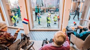 Voor student Fjell Kuijper sprong het project Samen Fun, dat de tweede prijs won bij de Stimuleringsprijs 2020, eruit. “Het idee is dat peuters langsgaan bij ouderen die in een tehuis wonen om samen te bewegen. Het lijkt een simpel concept, maar het is opvallend hoe goed het aanslaat. Als de kinderen binnen komen ontstaat er gelijk een spontane sfeer, de ouderen hebben snel aansluiting op het niveau van de kinderen. De groep gaat samen aan de slag met beweegactiviteiten. Een voorbeeld is dat ouderen op een stoel zitten. Er gaat muziek op en de ouderen strekken de benen omhoog. Zij trainen op die manier op een lichte manier hun core. De kinderen kruipen ondertussen onder de benen door. Dat samenspel geeft veel plezier.”