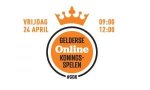 De Gelderse Online Koningsspelen vinden plaats op vrijdag 24 april, van 09.00 tot 12.00 uur. Kinderen wordt gevraagd om hun activiteiten zoveel mogelijk live of achteraf te delen via social media en de hashtag #GoK te gebruiken.